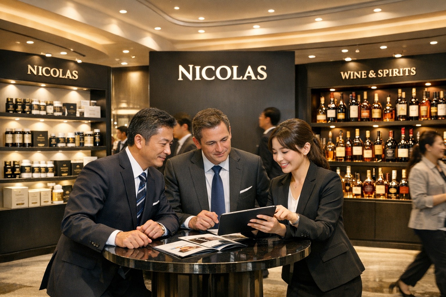 今回は世界に向けた英語のご案内となり、日本語での詳細は資料請求にて対応。ジャパニーズウイスキー、ワイン、ノンアルコールビール、健康サプリメントなど、多彩な商品を取り揃えています。